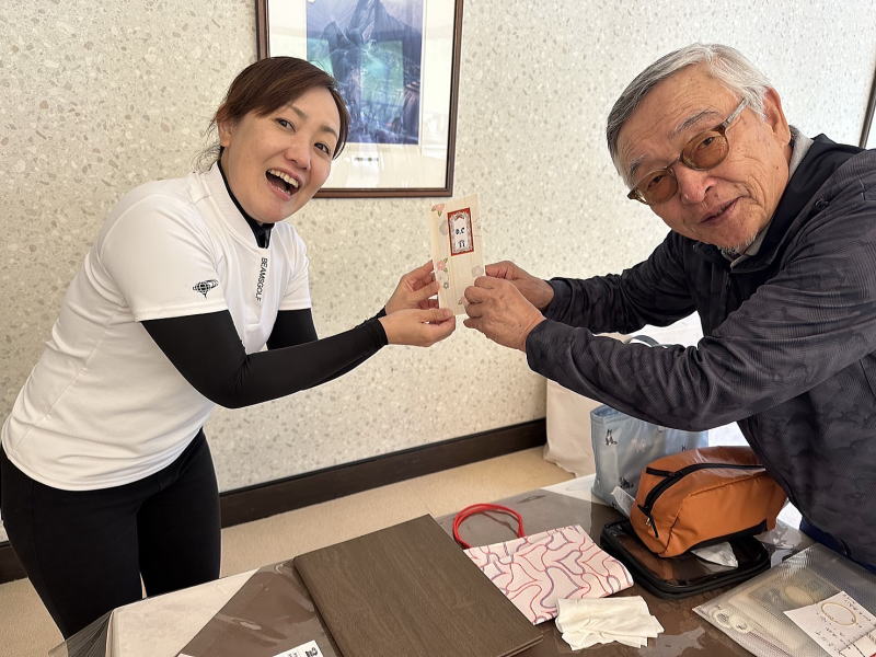 健闘を称え合う一位の長谷川さん(左側)二位の杉野さん |